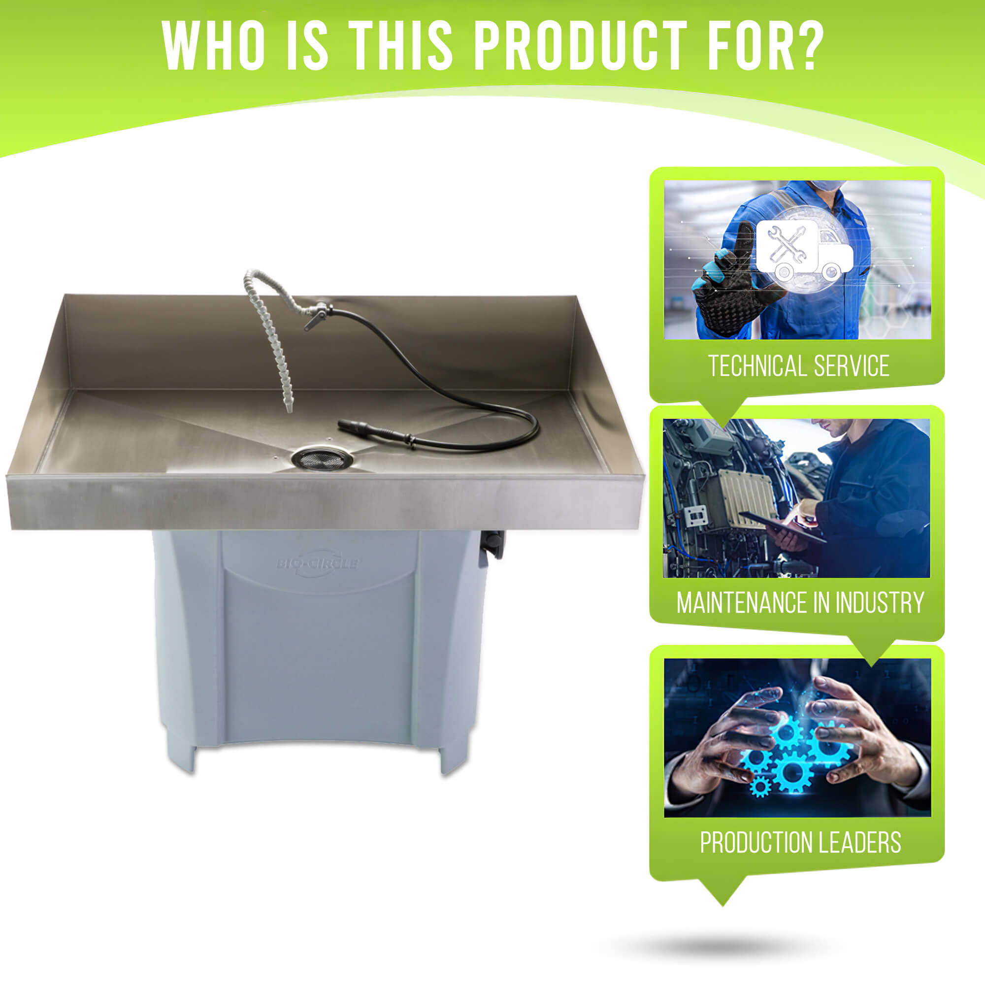 Teilewaschtisch mit verstärktem Oberteil zur Reinigung großer und schwerer Teile.