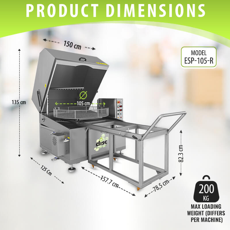 Mit dem ESP-105-R, einem leistungsstarken Hochdruck-Teilereiniger, entscheiden Sie sich für eine kosteneffiziente und benutzerfreundliche Lösung zur Teilereinigung großer und schwerer Industriekomponenten mit einem maximalen Gewicht von bis zu 150 Kilogramm. Das Teilewaschgerät Hochdruck verfügt über einen Ladekorb mit einem Durchmesser von 1050 mm und einer Höhe von 460 mm, was optimalen Platz für verschiedene Teile bietet. Der ESP 105-R hat eine Gesamtleistung von 10 kW, was schnelle und gründliche Reinigungsergebnisse gewährleistet. Die Maschine bietet einstellbare Waschzeiten, sodass Sie den Reinigungszyklus für optimale Ergebnisse anpassen können. Der Unterschied zwischen der ESP 105 und der ESP 105-R ist der mitgelieferte Ladewagen, der das Beladen schwerer Teile erleichtert. Weitere Informationen
