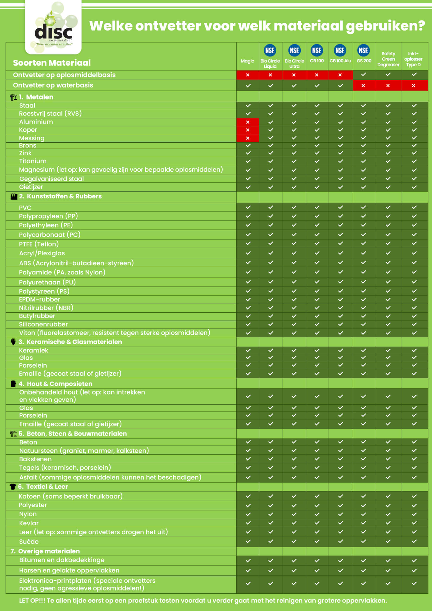 Bij contact zorgvuldig behandelen – Kan materialen aantasten.