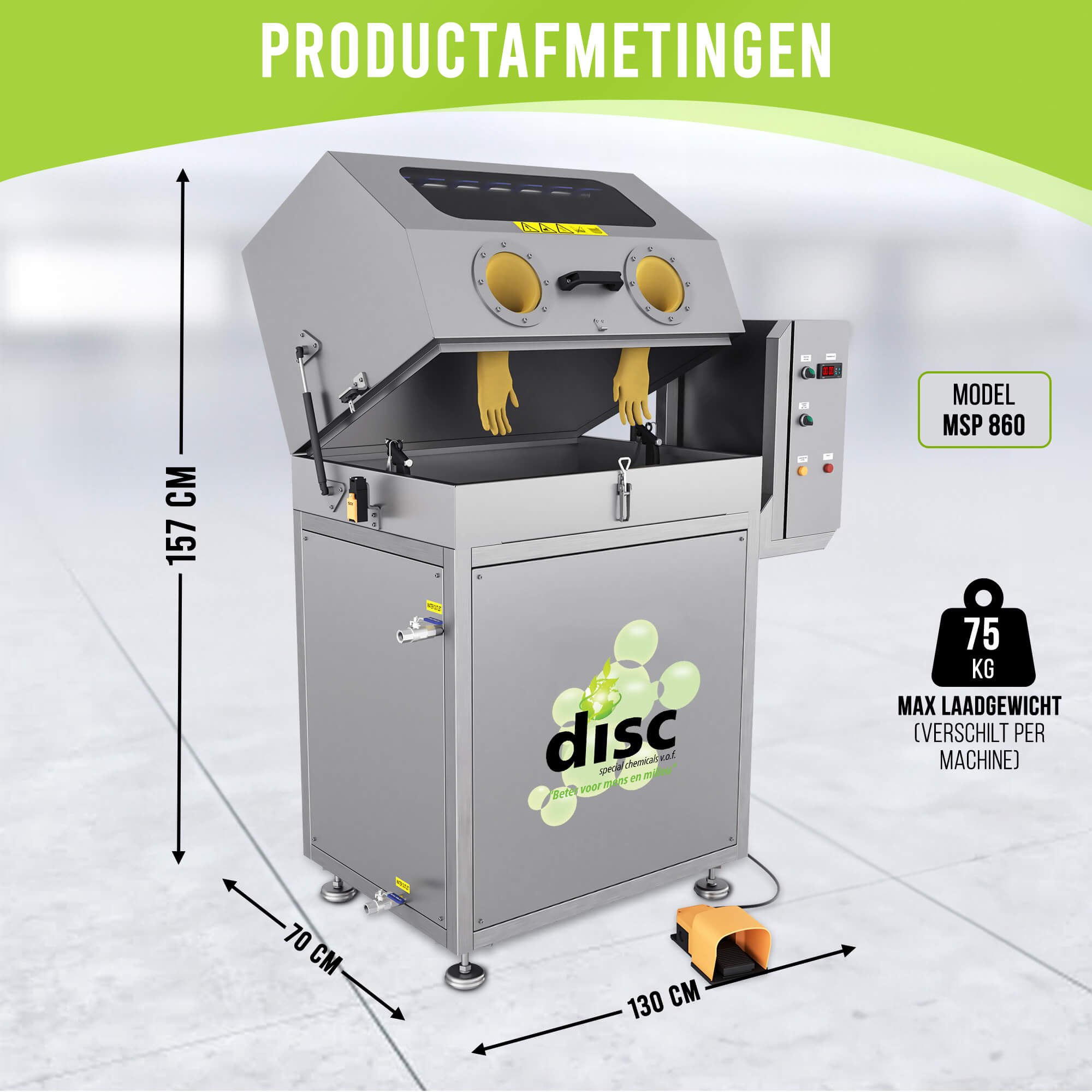 De MSP serie bestaat uit 2 Machines de MSP 860 en de MSP 1280. Het verschil tussen de MSP 860 en de MSP 1280 ligt voornamelijk in de afmetingen en de capaciteit van de machines. De MSP 1280 is een grotere machine met een grotere waskamer, geschikt voor het reinigen van grotere of meer onderdelen tegelijk. Dit model biedt meer ruimte om zwaardere en grotere industriële onderdelen te reinigen. De MSP 860 is compacter en beter geschikt voor kleinere onderdelen of werkruimtes waar minder fysieke ruimte beschikbaar is. Beide modellen behouden dezelfde functionaliteiten, zoals het ingebouwde blaaspistool, verlichting en het persluchtsproeisysteem, maar de MSP 1280 biedt meer capaciteit en kracht voor zwaardere reinigingstaken.