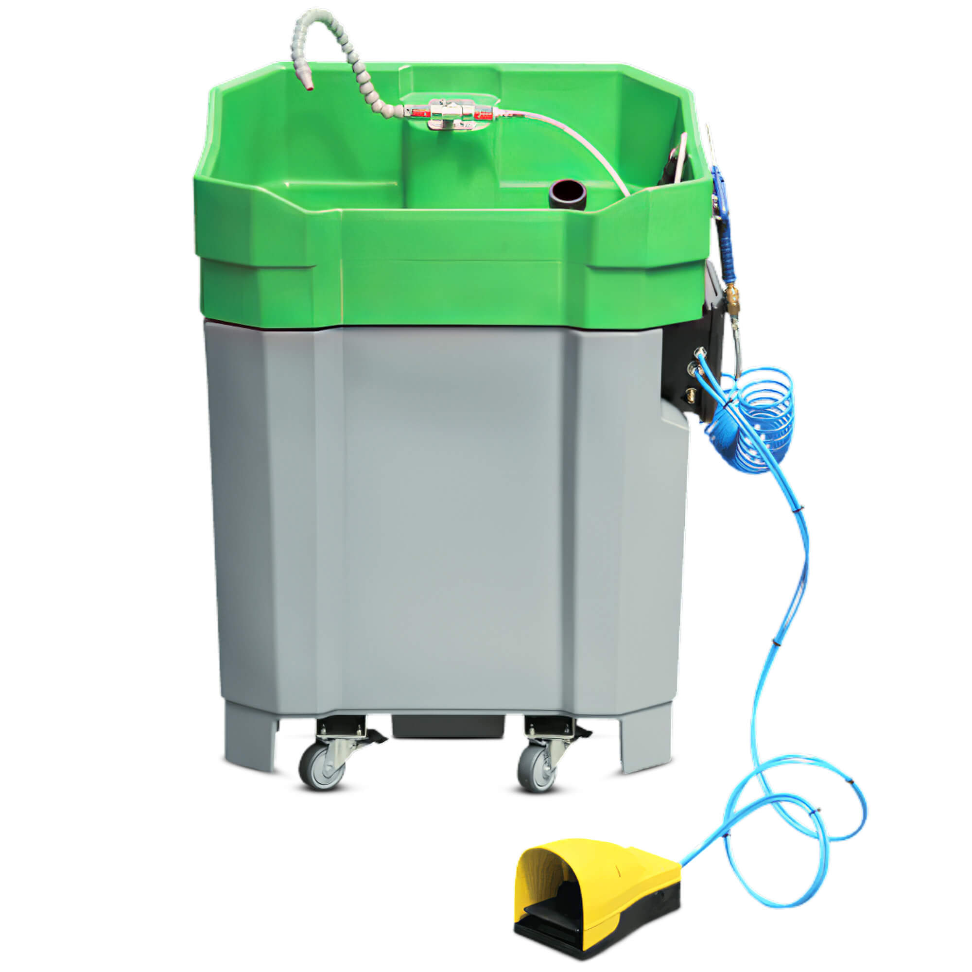 Speziell entwickelter Teilewaschtisch zur Reinigung von Farb- und Sprühteilen.