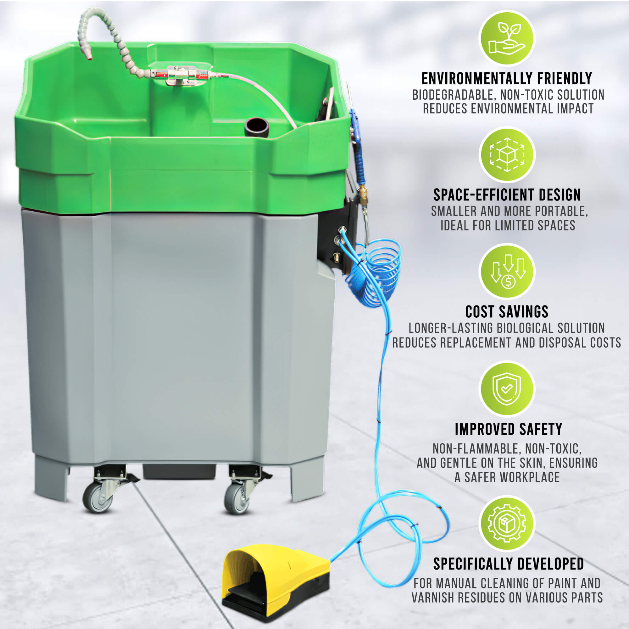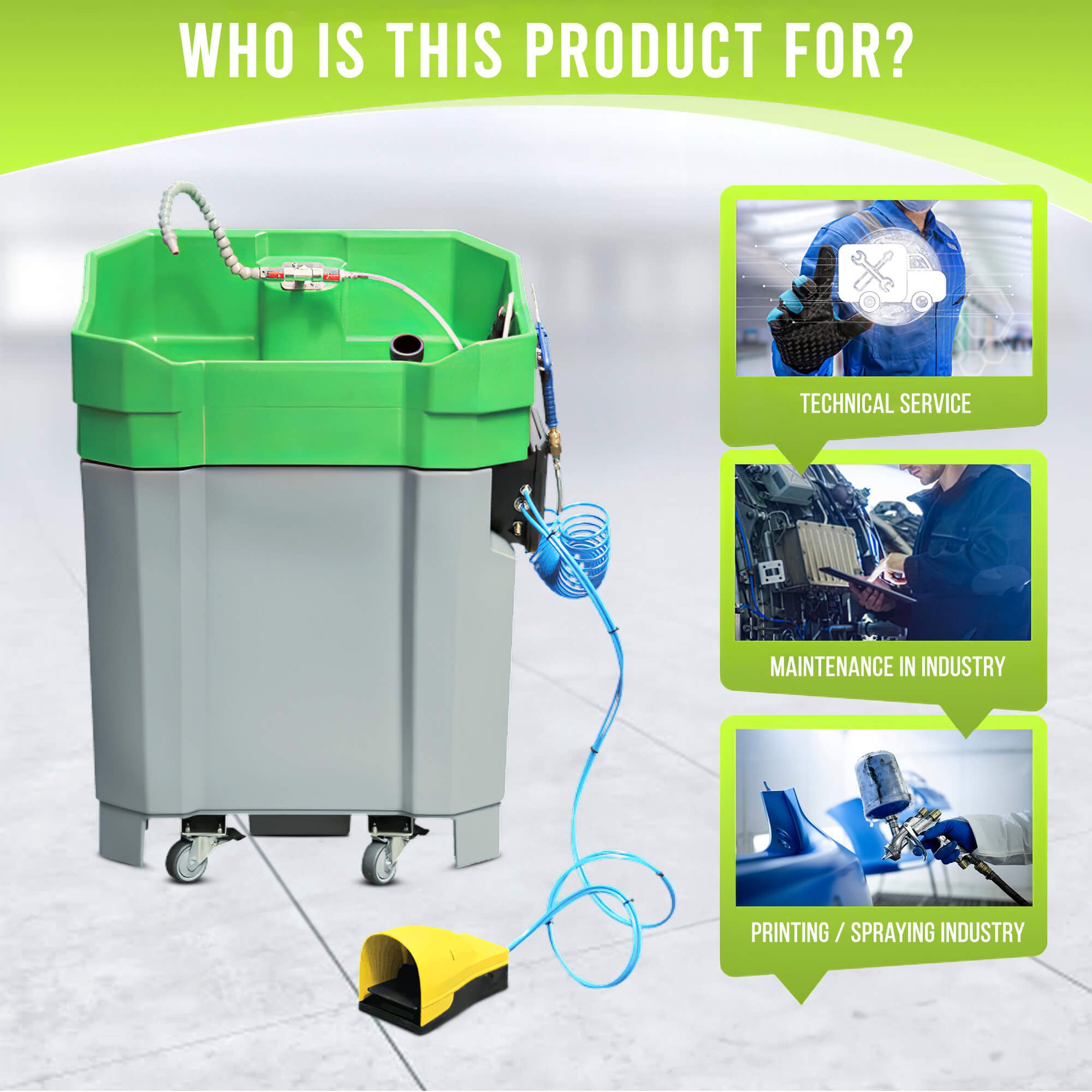 - Flexible Einsetzbarkeit: Geeignet für die Reinigung verschiedener, mit Farbe in Verbindung stehender Teile wie Spritzpistolen und Schablonen.