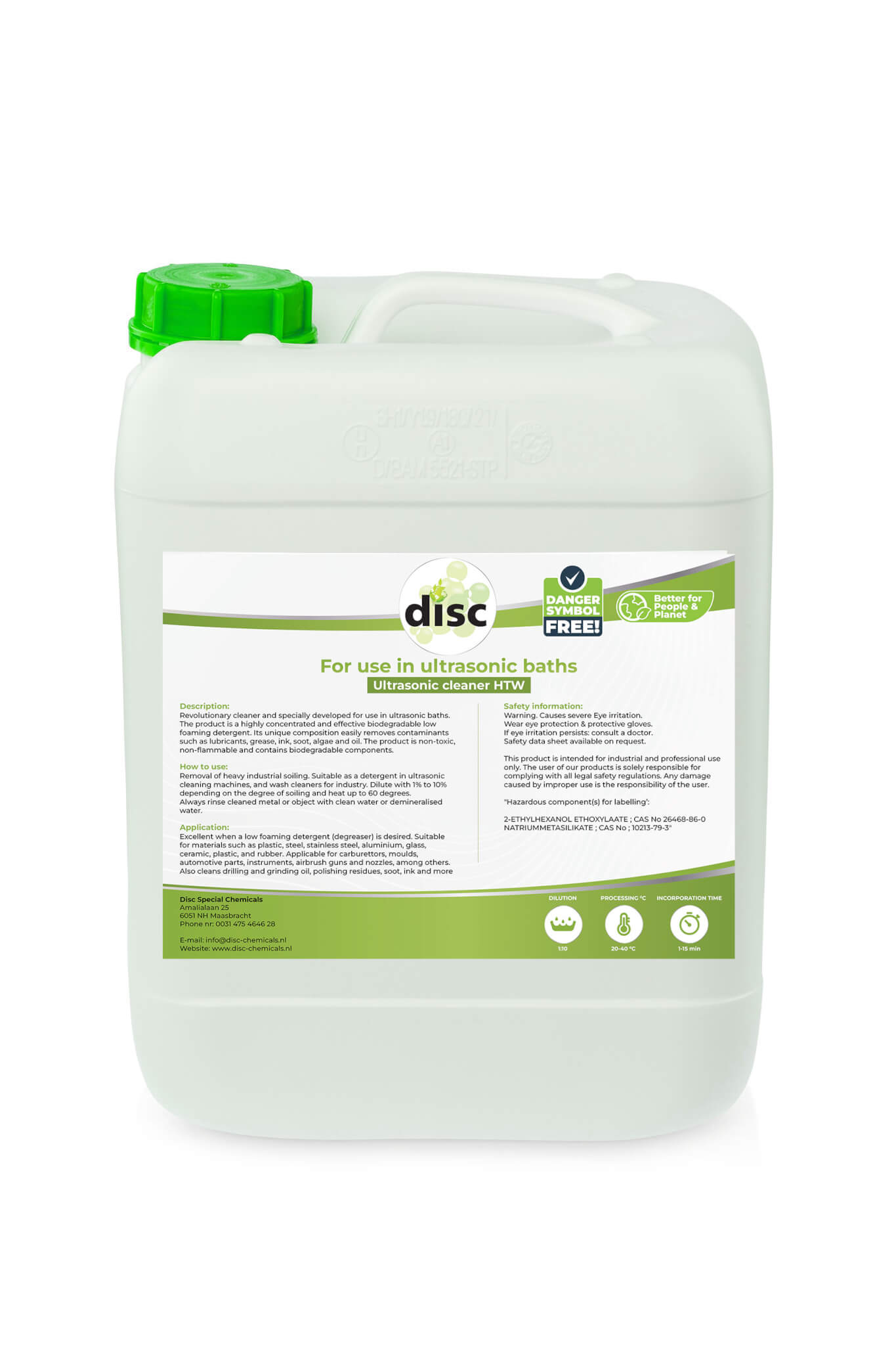 Unser Ultraschallreiniger HTW ist die perfekte Wahl für Unternehmen, die eine effiziente, nachhaltige und leistungsstarke Reinigungsoption suchen. Speziell für den Einsatz in Ultraschallbädern entwickelt, bietet dieser Reiniger die ideale Lösung zur Entfernung schwerer industrieller Verschmutzungen. Von Fett und Öl bis hin zu Ruß und Tinte – Ultraschallreiniger HTW entfernt alles, ohne die Umwelt zu belasten. Das Produkt ist ein hochkonzentriertes, niedrig schäumendes Reinigungsmittel, das nicht toxisch, nicht brennbar und biologisch abbaubar ist.